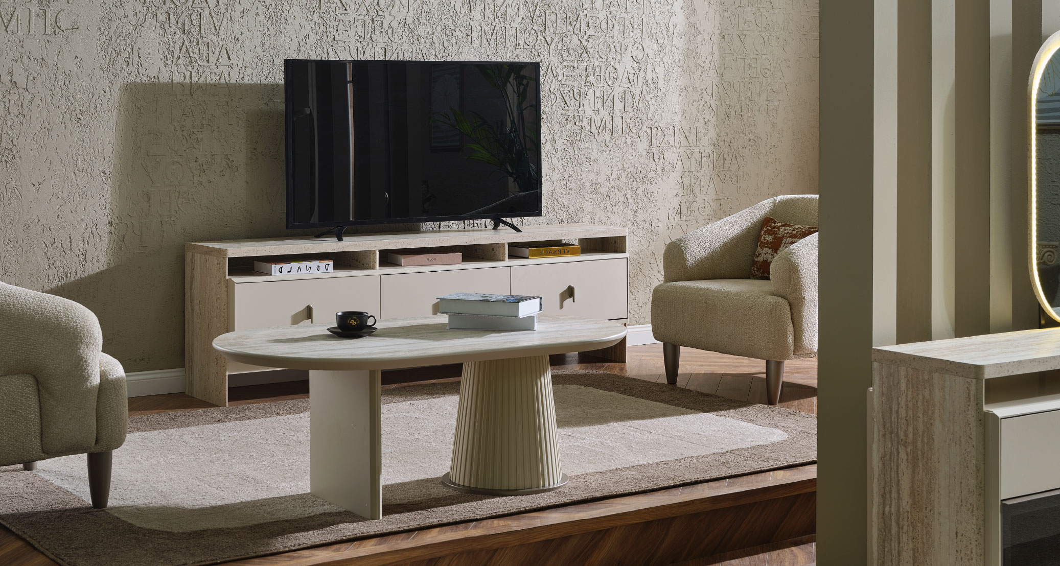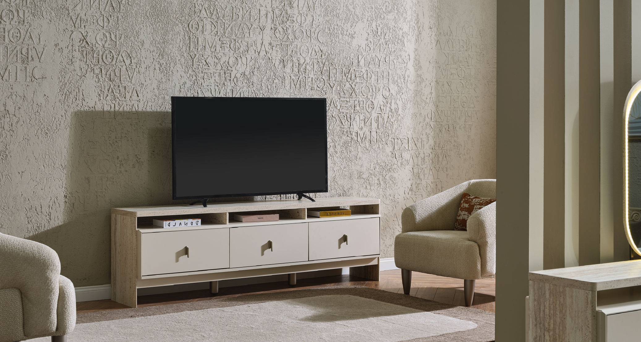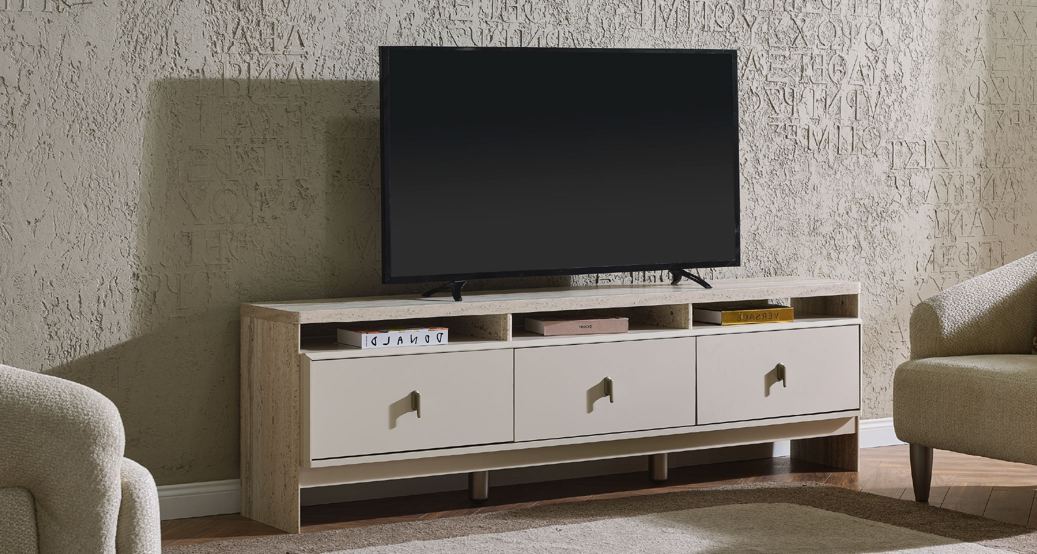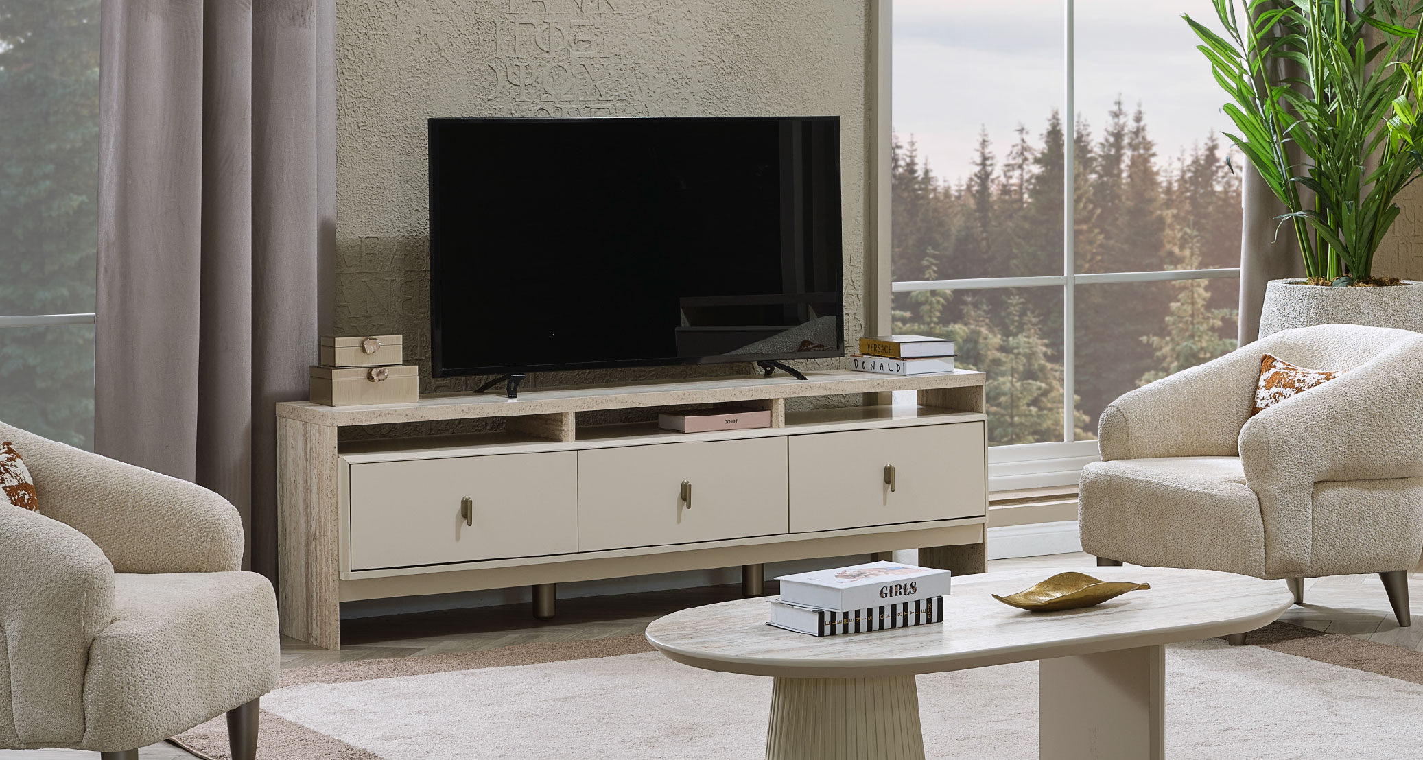 The Bern TV Unit adds elegance and organization to your living room with its modern design and functional details. Made from high-quality materials, it combines durability and aesthetics. Its spacious storage and practical shelves ensure both order and convenience. Featuring natural color tones and elegant lines, it brings a peaceful and stylish touch to your space. The Bern TV Unit is the perfect choice for those seeking both style and functionality.