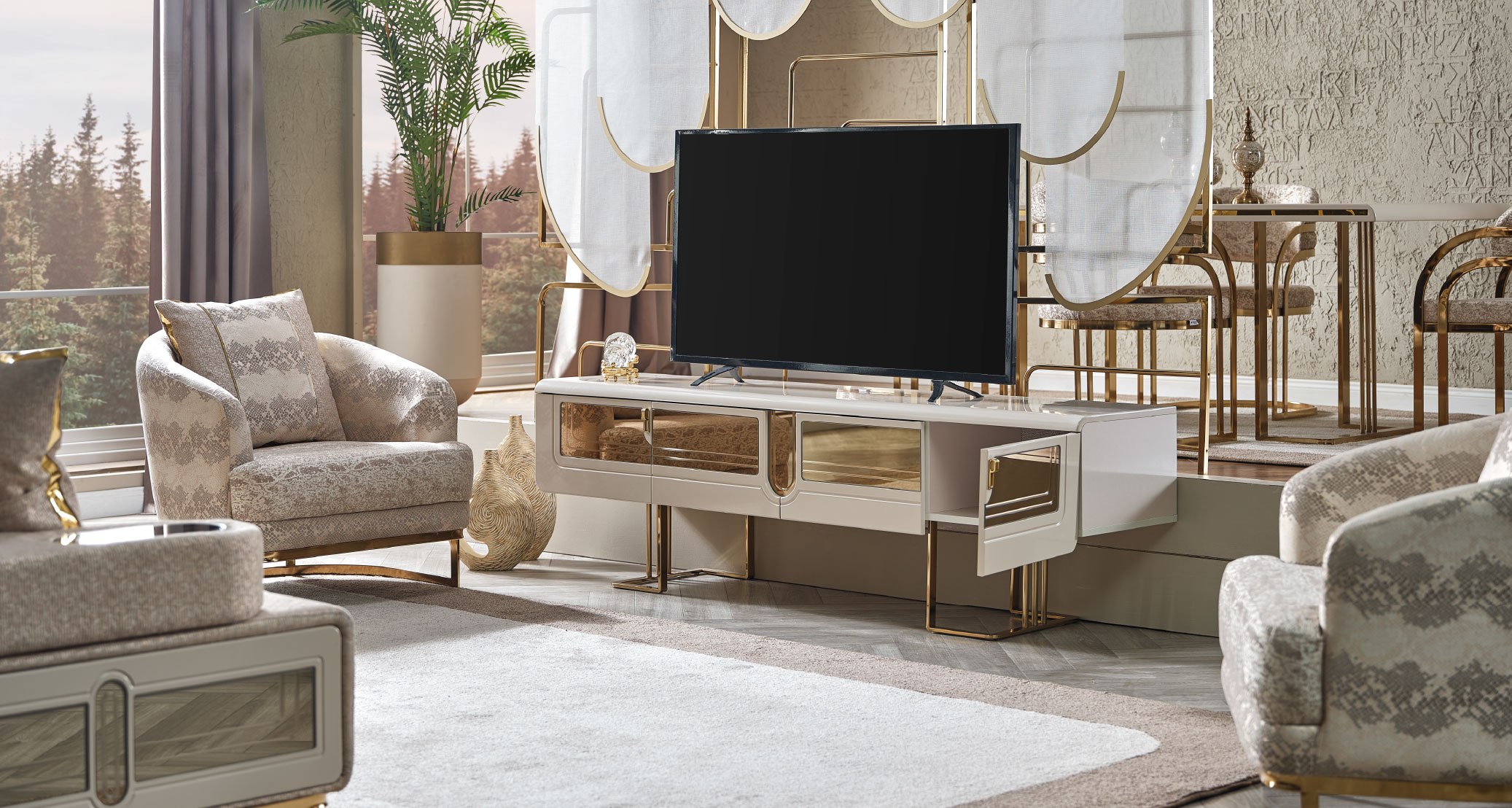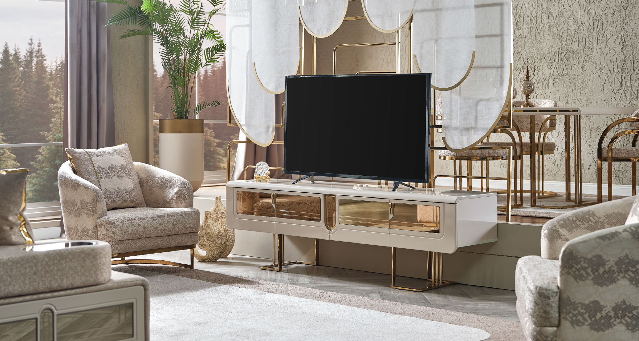 The Monza TV Unit adds elegance and organization to your living room with its modern design and functional details. Made from high-quality materials, it combines durability and aesthetics. Its spacious storage and practical shelves ensure both order and convenience. Featuring natural color tones and elegant lines, it brings a peaceful and stylish touch to your space. The Monza TV Unit is the perfect choice for those seeking both style and functionality.