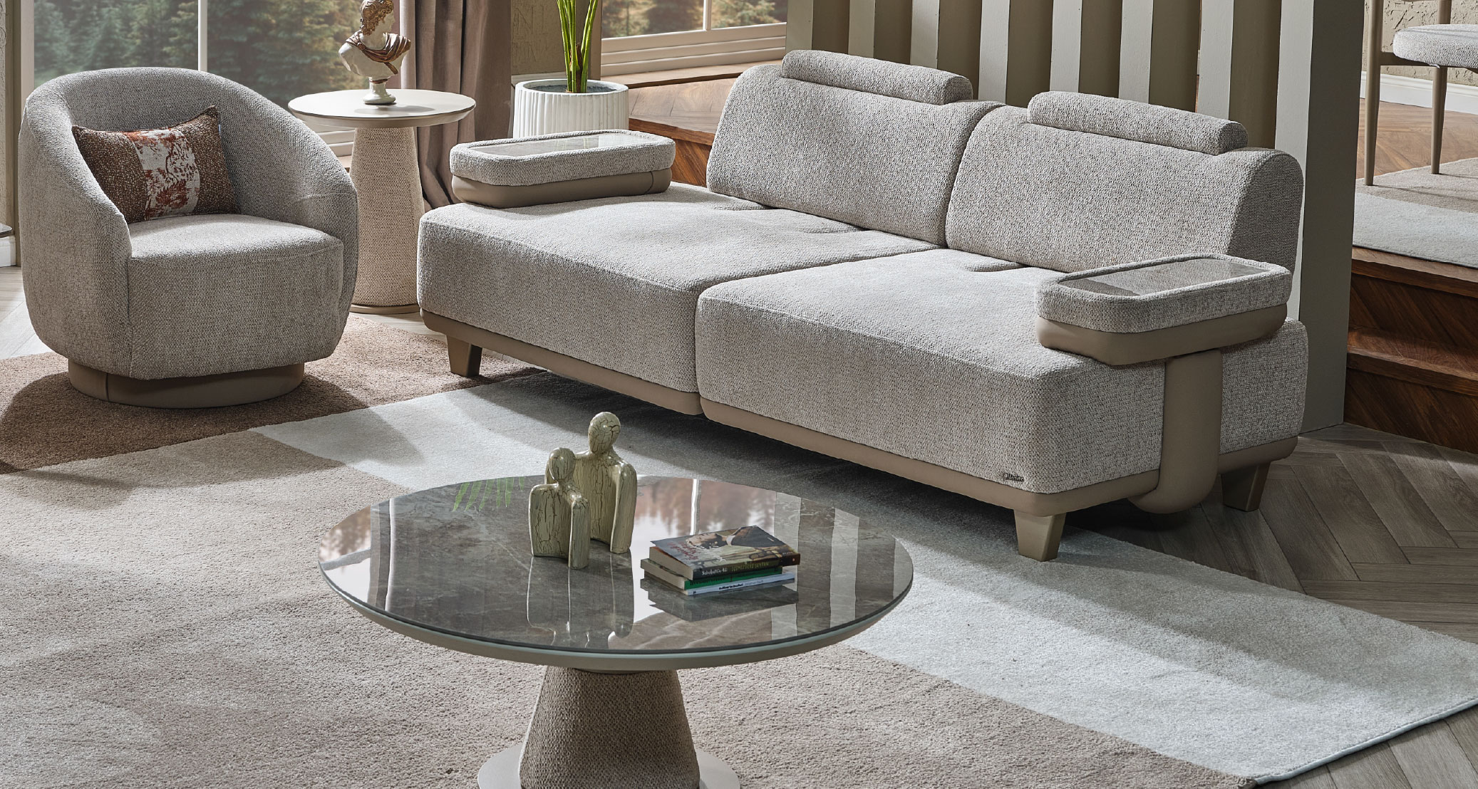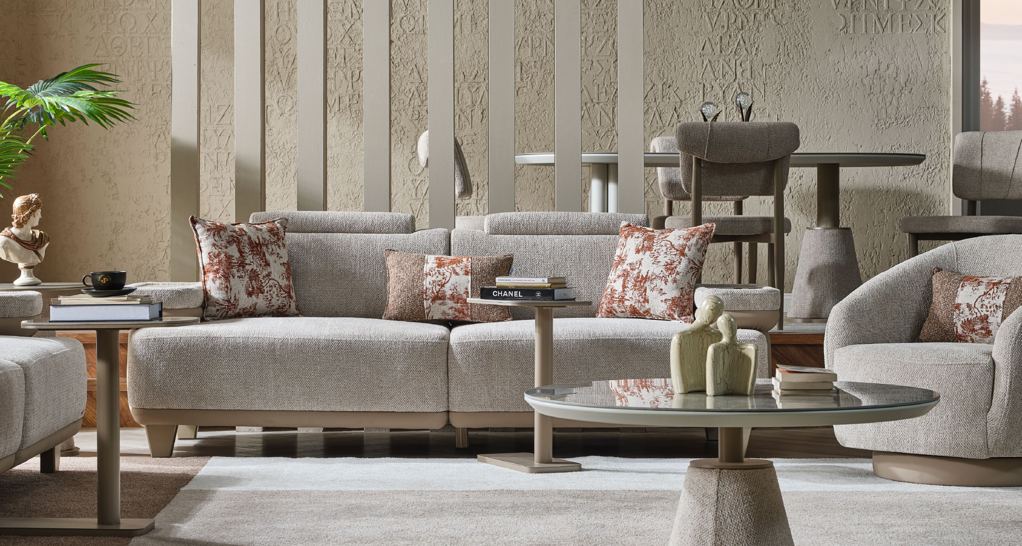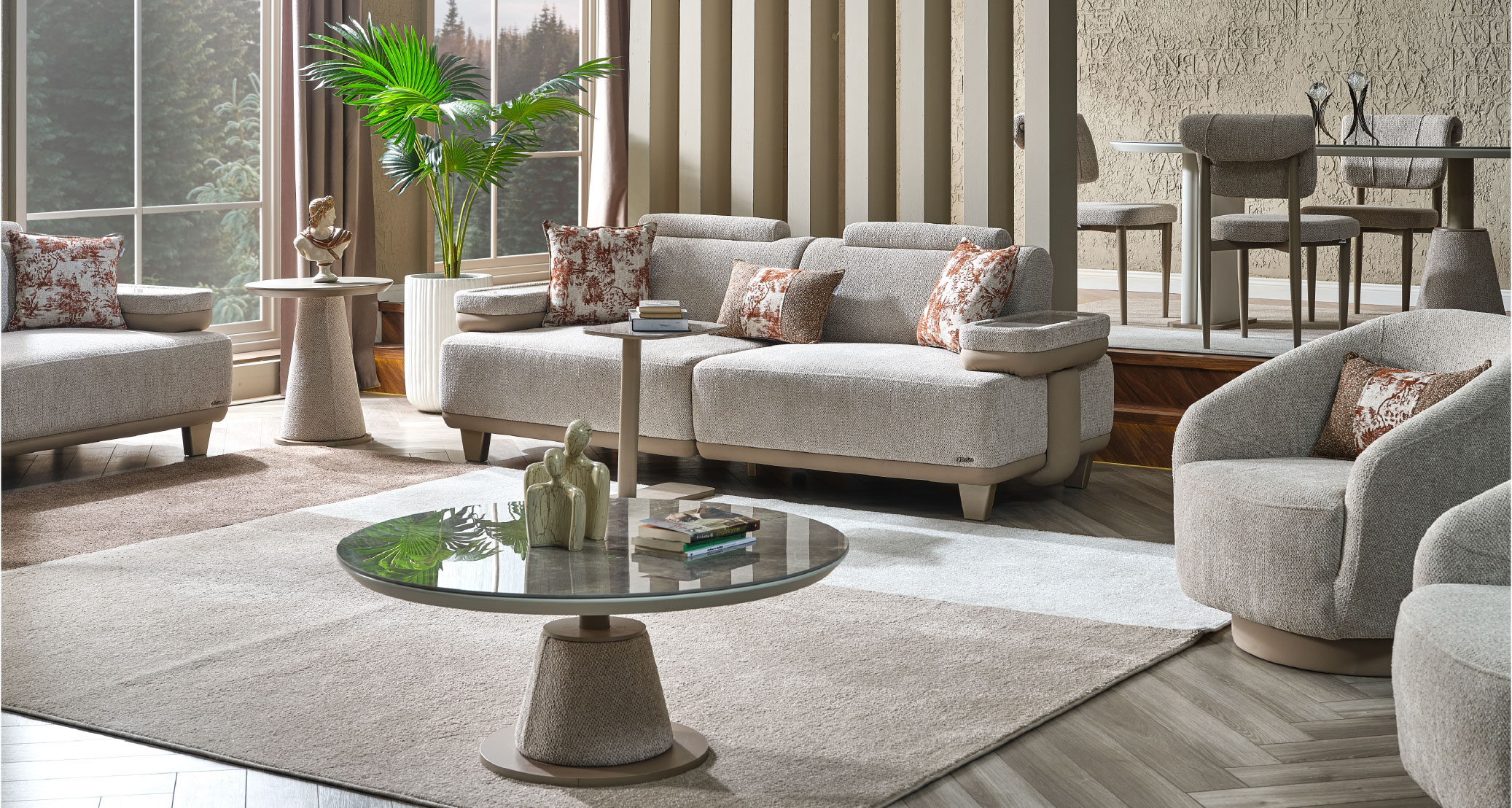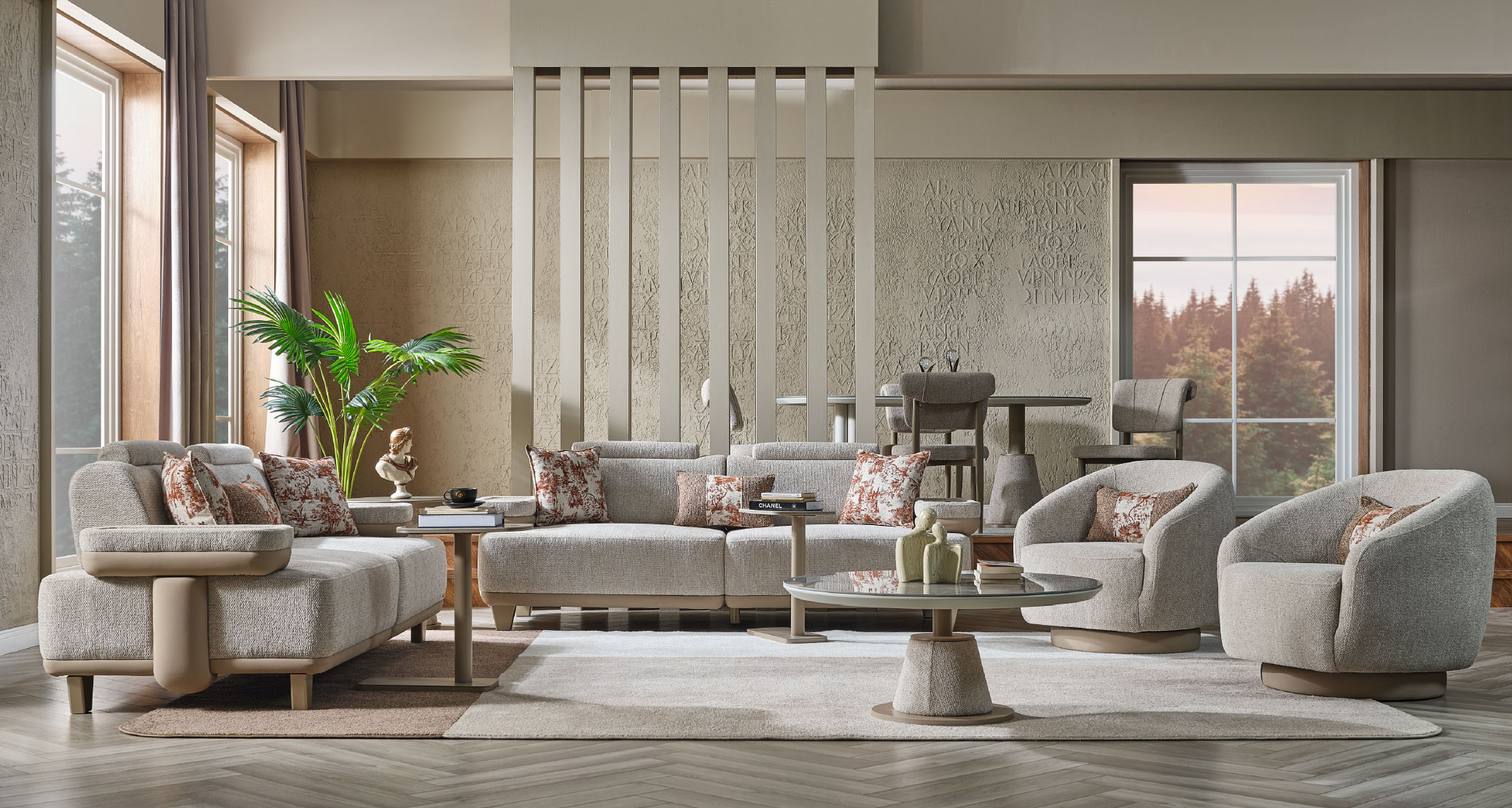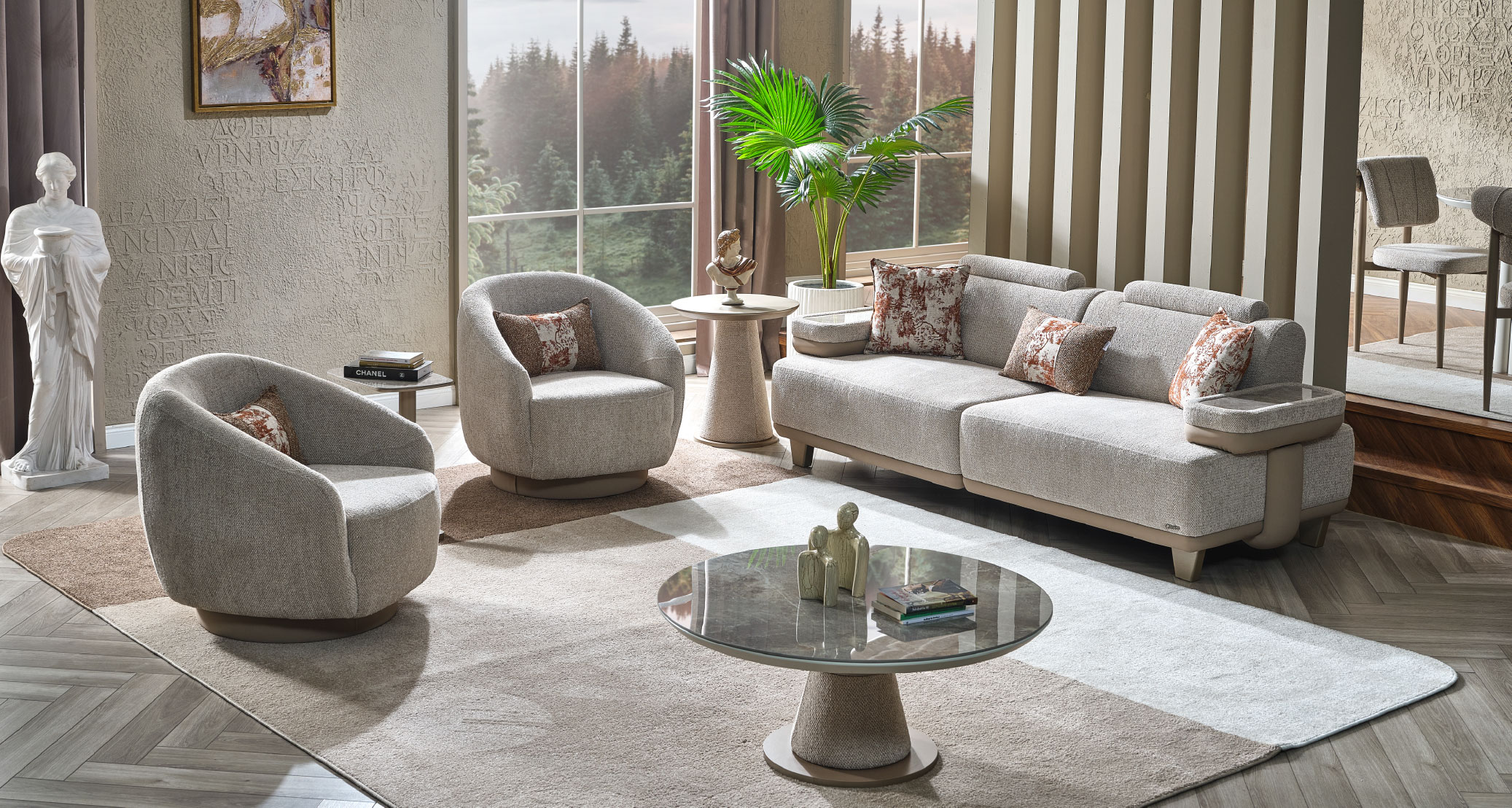 The Prag Sofa Set brings a sophisticated touch to your living space with its modern design and comfort-focused details. Crafted from high-quality materials, it combines durability and elegance. With its spacious seating and ergonomic structure, it offers both comfort and aesthetics. Featuring natural color tones and elegant lines, it creates a peaceful and stylish seating environment. The Prag Sofa Set is the perfect choice for those seeking both style and comfort.