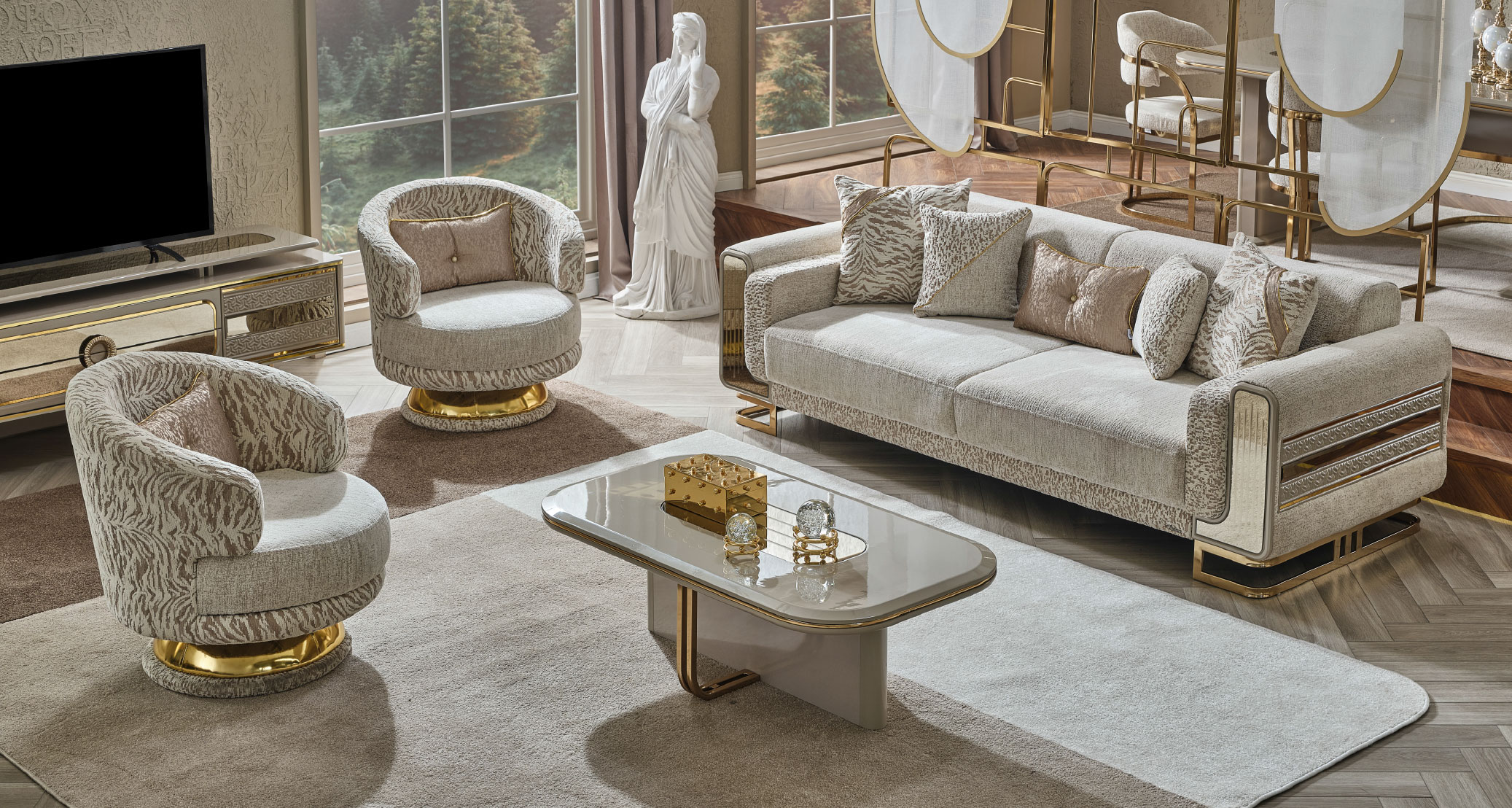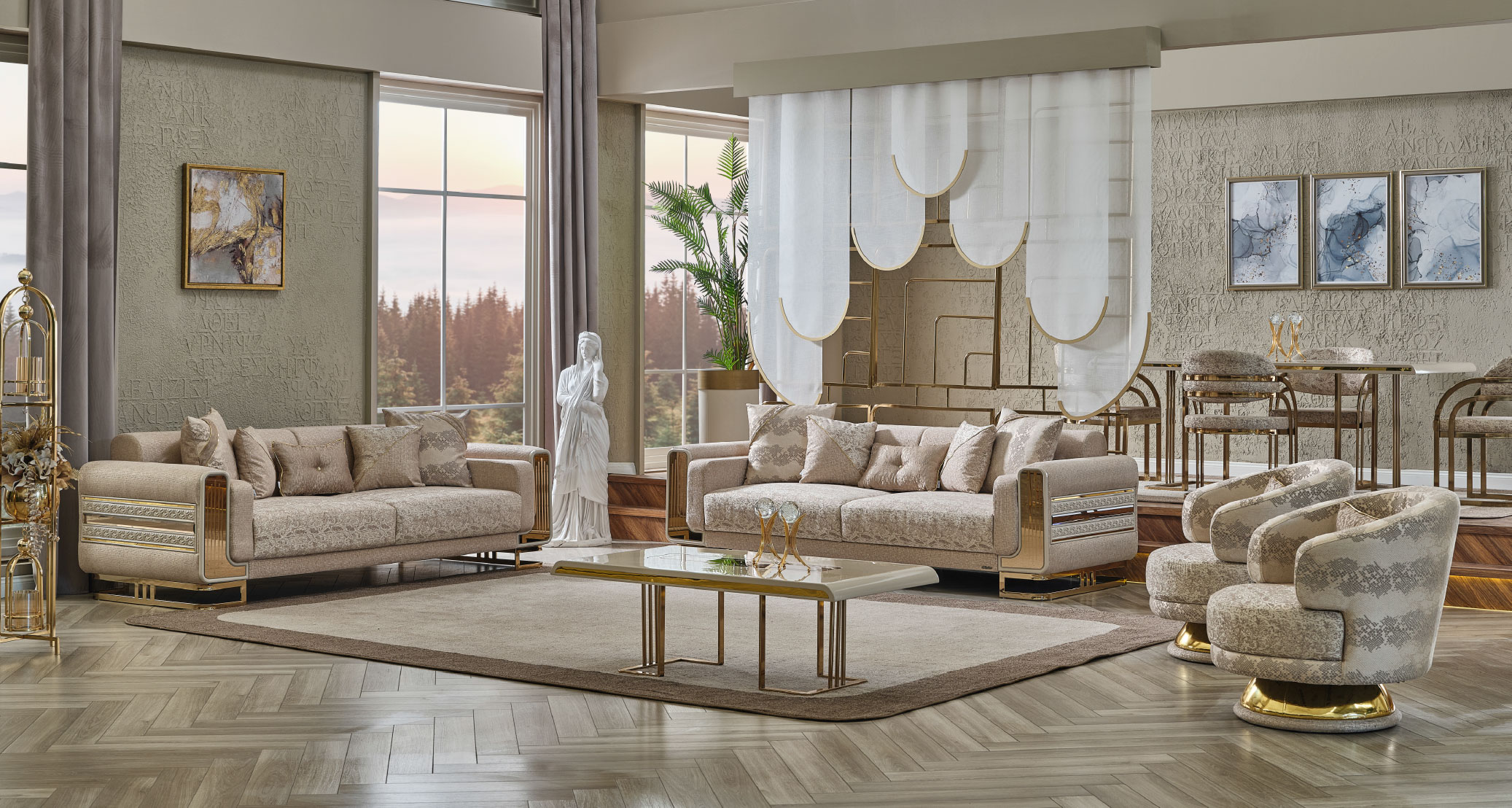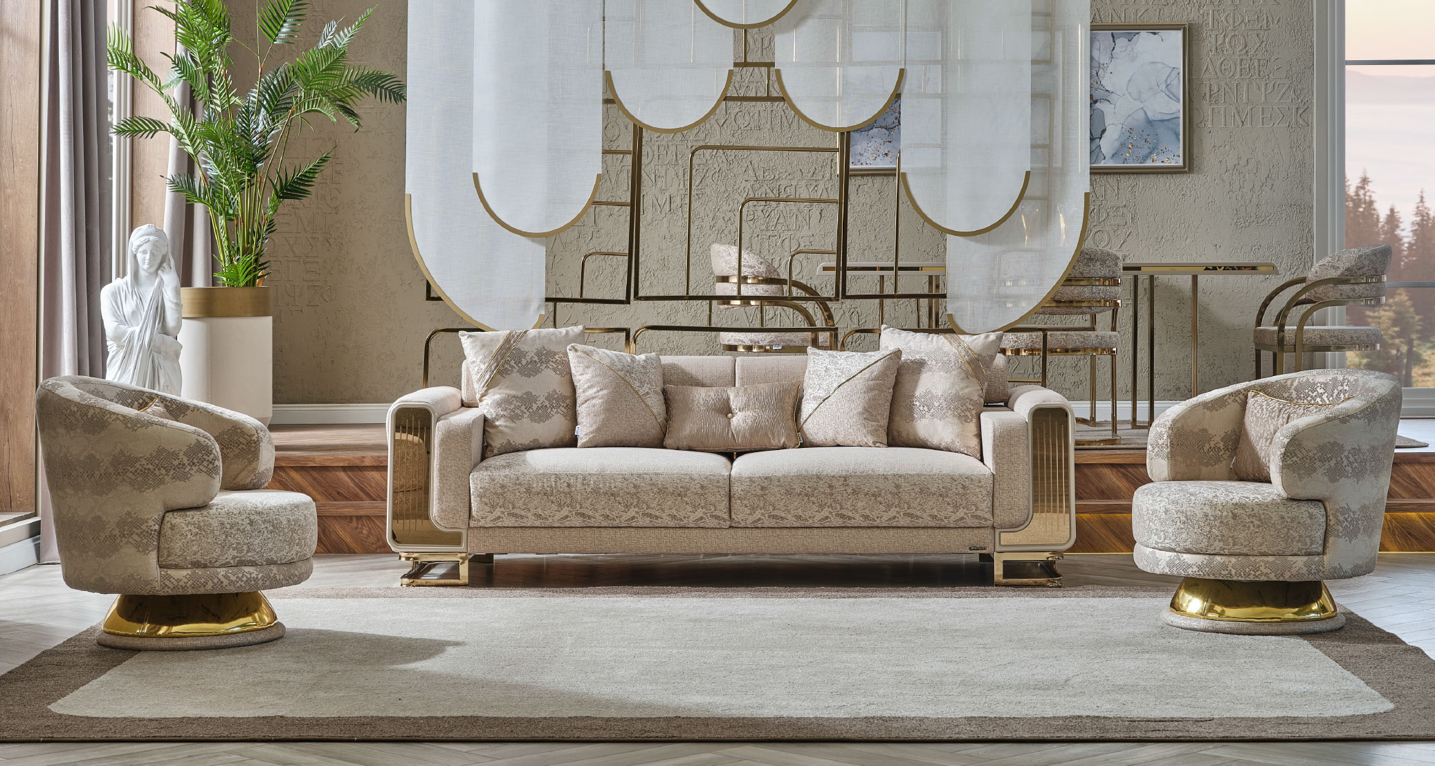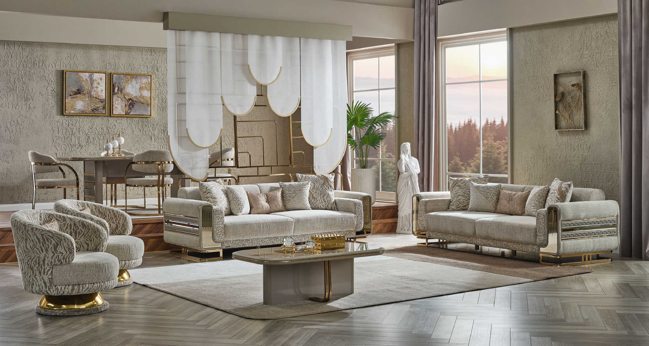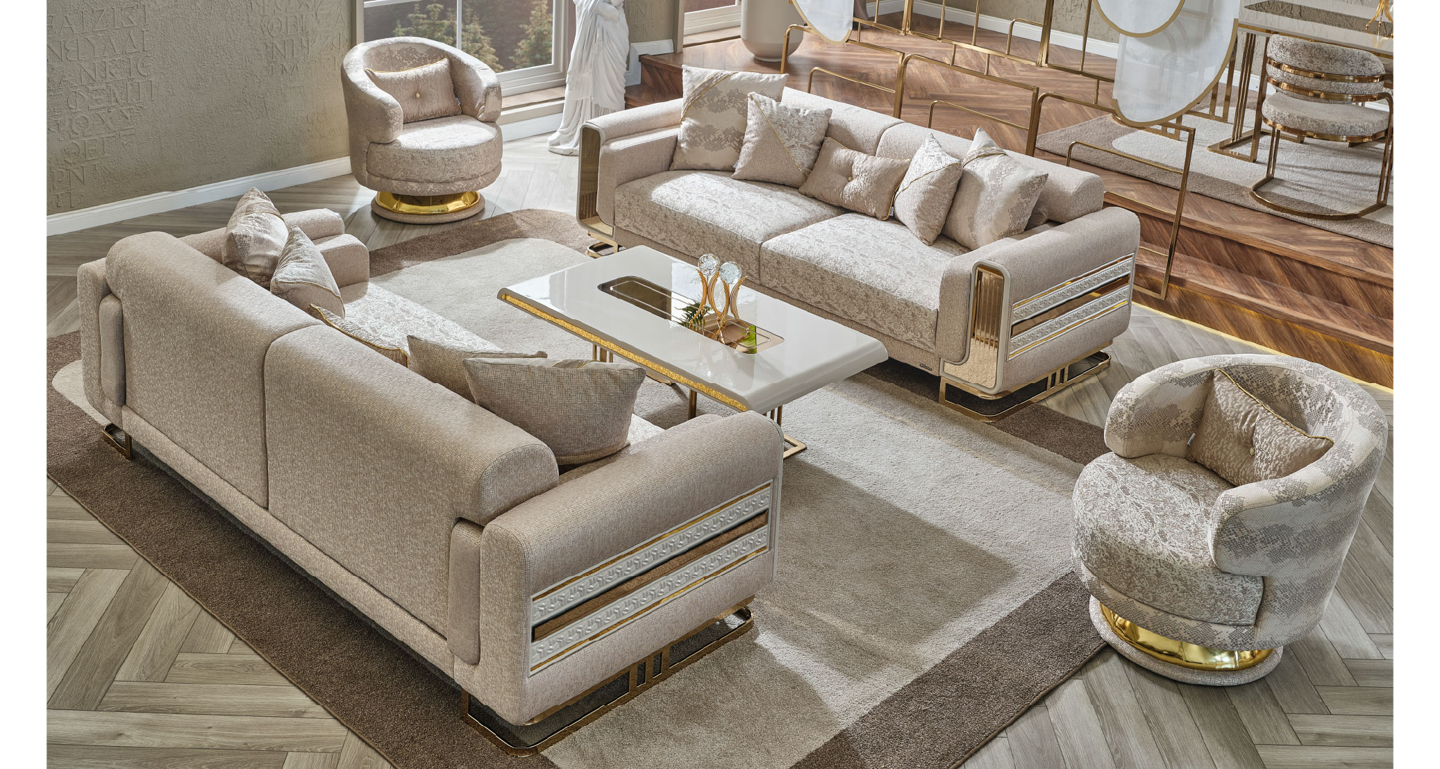 Delüx Koltuk Takımı, modern tasarımı ve zarif detaylarıyla yaşam alanlarınıza lüks bir dokunuş kazandırır. Şık hatları ve özenle tasarlanmış detayları estetik bir görünüm sunarken konforlu yapısıyla rahat bir kullanım sağlar. Geniş oturma alanı, kaliteli döşeme kumaşı ve uyumlu modülleriyle hem şıklığı hem de konforu bir araya getirir. Delüx Koltuk Takımı, zarafet ve rahatlığı birlikte arayanlar için ideal bir tercihtir.