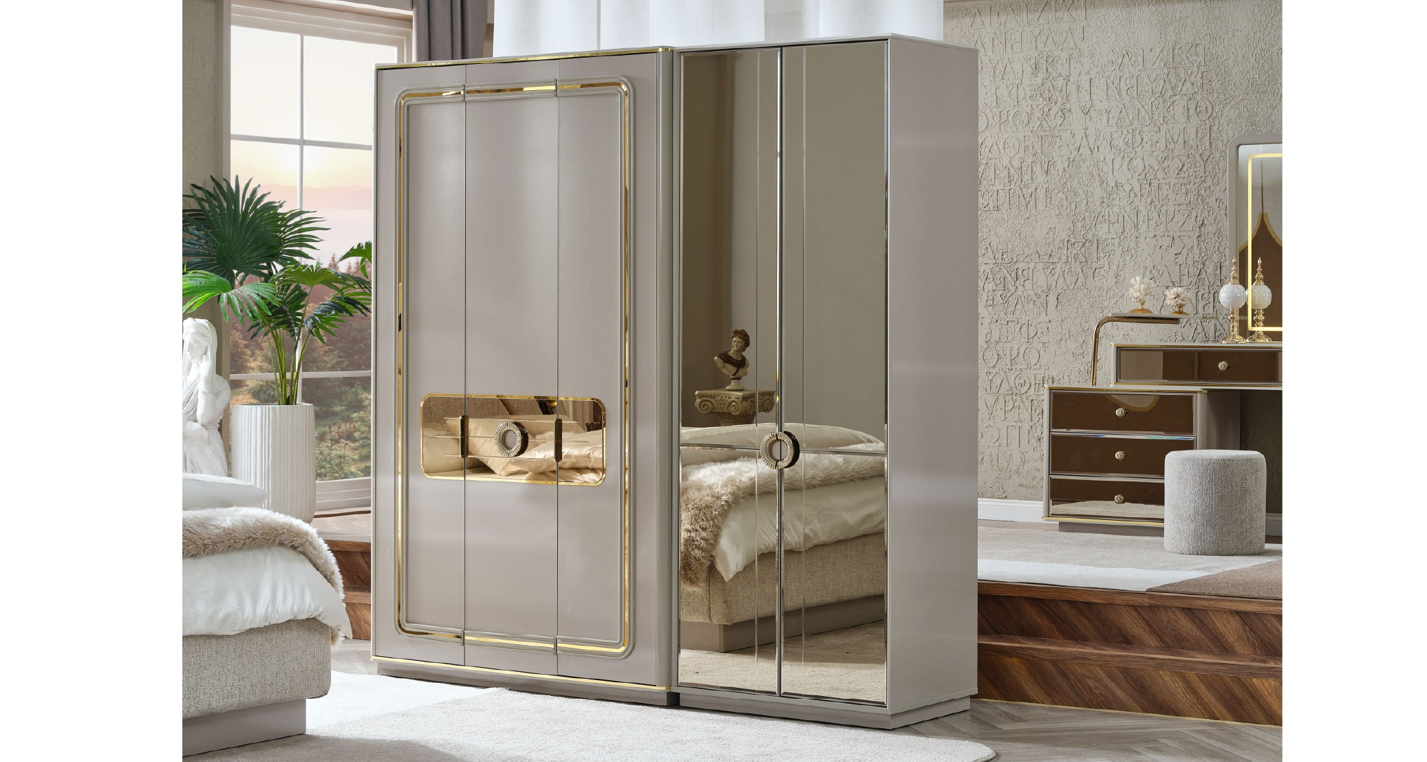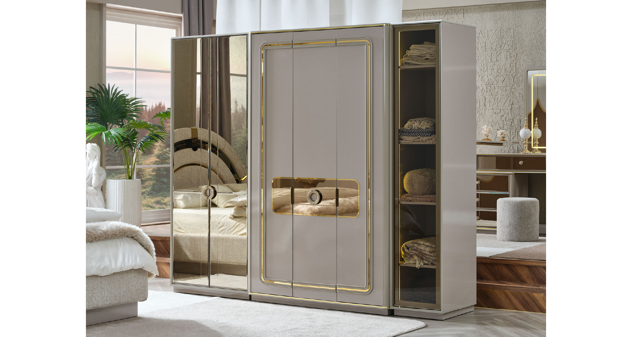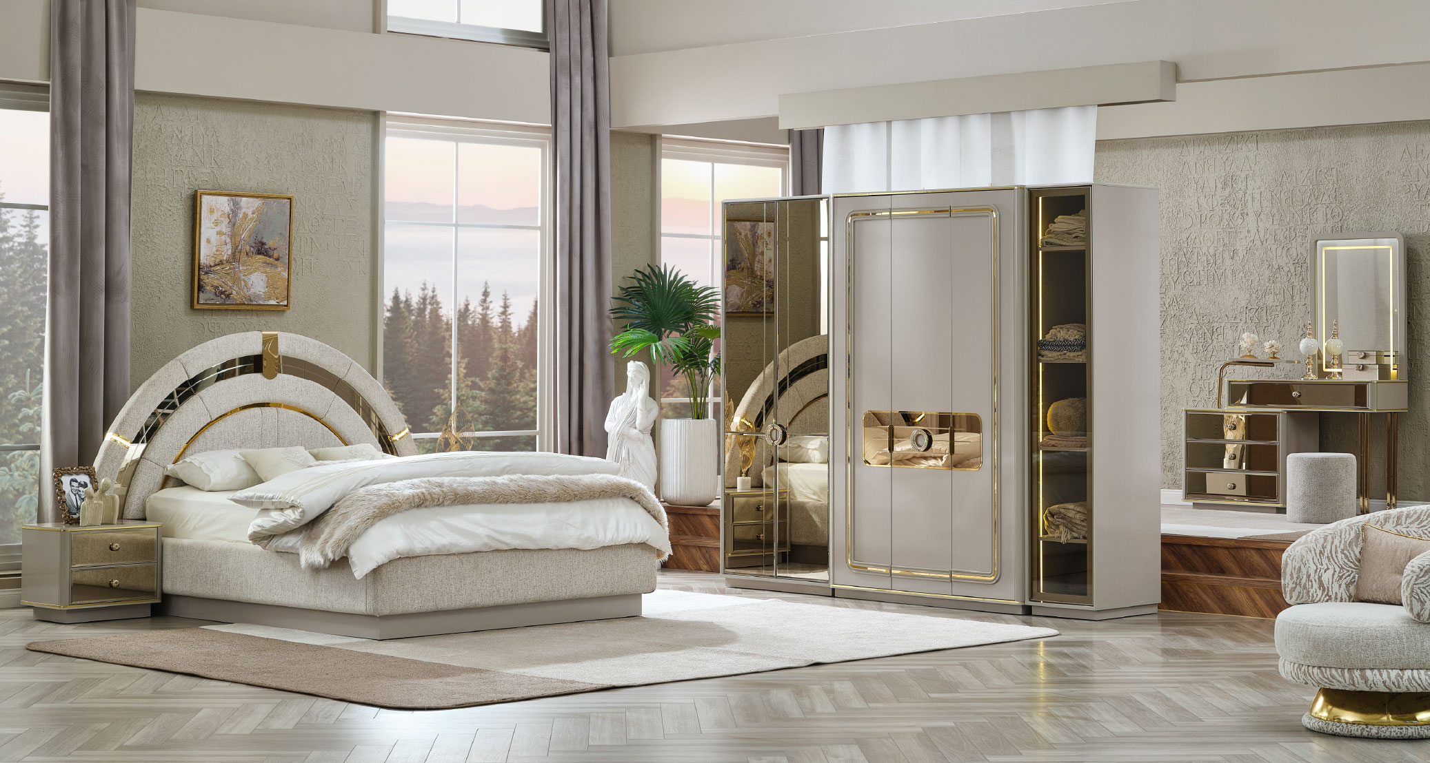 Delüx Yatak Odası Takımı, modern tasarımı ve zarif detaylarıyla yaşam alanınıza lüks bir atmosfer kazandırır. Şık çizgilere sahip özel tasarımı, göz alıcı detaylarla estetik bir görünüm sunarken fonksiyonel yapısıyla kullanım kolaylığı sağlar. Geniş depolama alanına sahip gardırobu, konforlu yatak başlığı ve tamamlayıcı modülleriyle hem düzen hem de rahatlığı bir araya getirir. Delüx Yatak Odası Takımı, şıklık ve konforu bir arada arayanlar için ideal bir tercihtir.